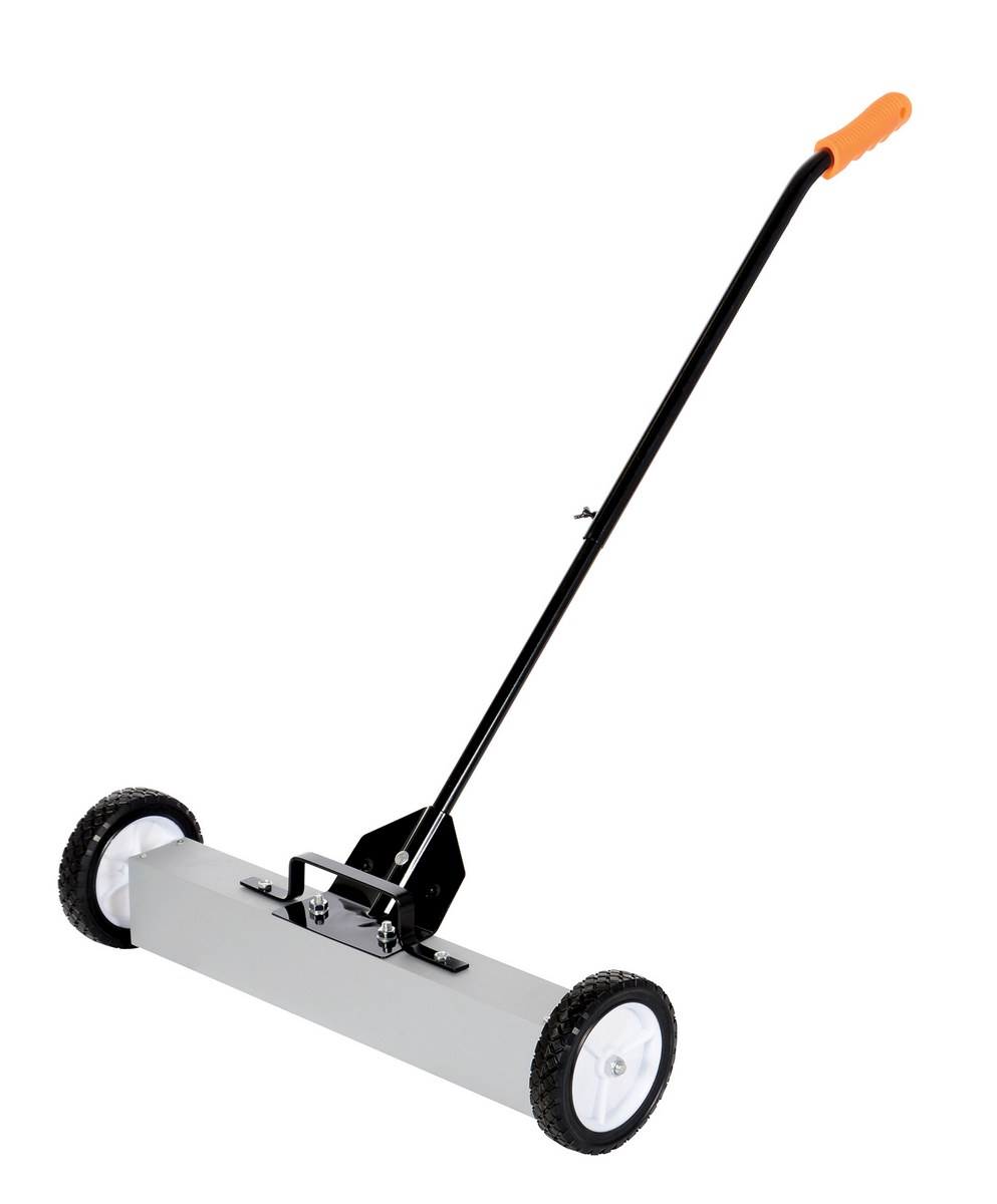 The powerful magnetic sweeper is ideal for manufacturing facilities and construction sites. The sweeper is ergonomically friendly with a handle controlled release. The design and capacity can accommodate large and small materials. While, the standard handle allows for comfortable upright position during use, the wheels allow smooth rolling for quick and easy collection of objects.