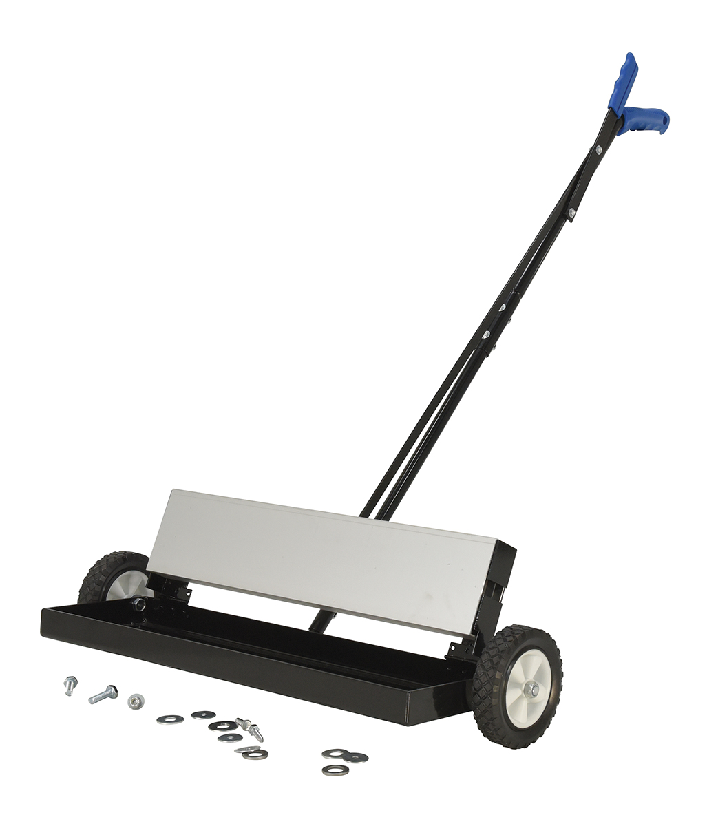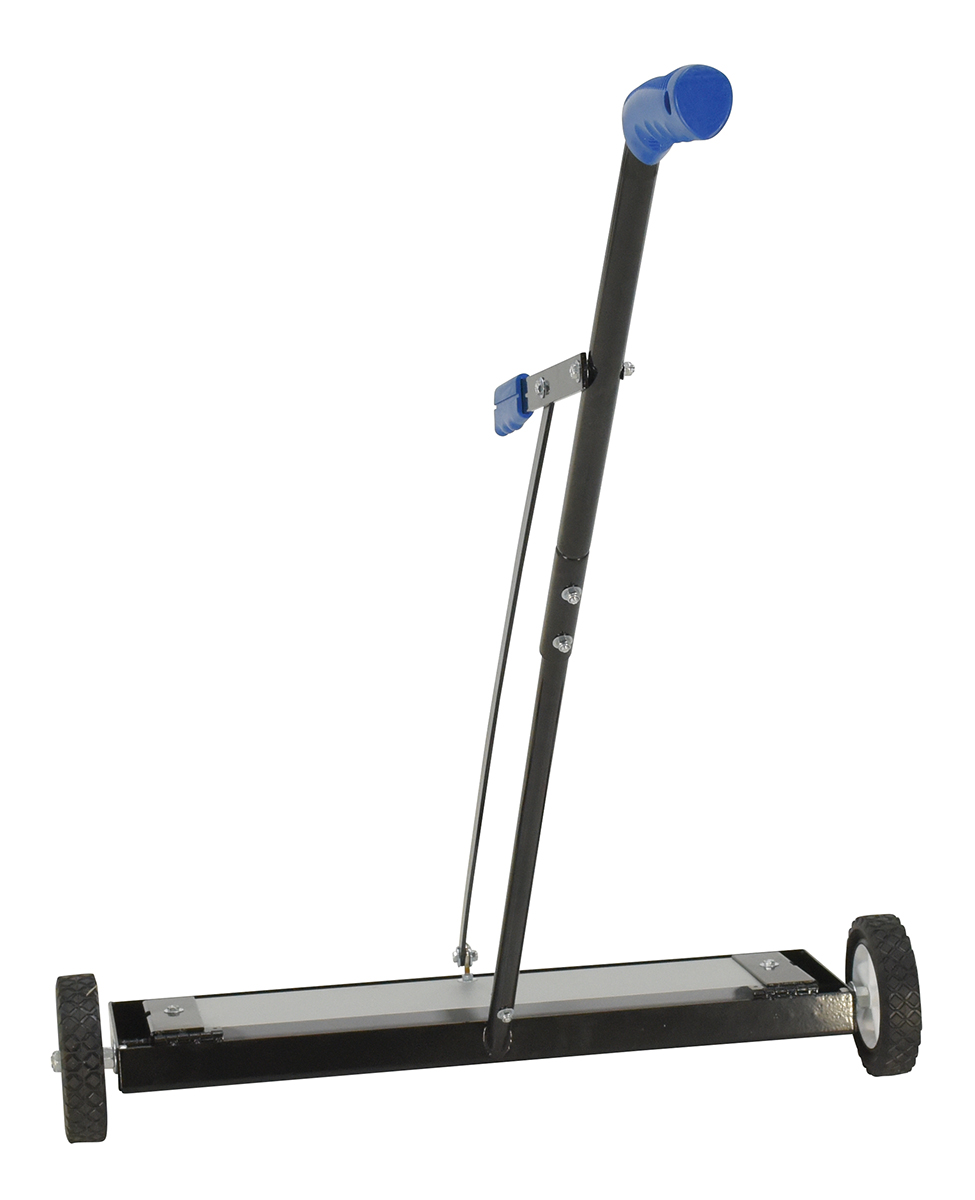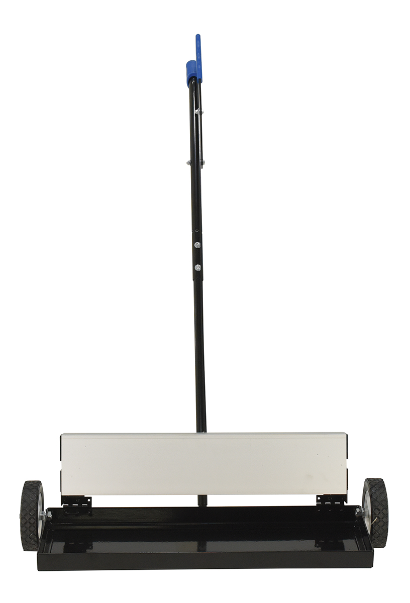 Magnetic Push Sweeper with Bended Handle 38 In. x 39 In. x 41 In. 50 Lb. Capacity BlackThe powerful magnetic sweeper is ideal for manufacturing facilities and construction sites. The sweeper is ergonomically friendly with a handle controlled release. The design and capacity can accommodate large and small materials. While, the bended handle allows for a comfortable upright position during use, the wheels allow smooth rolling for quick and easy collection of objects.