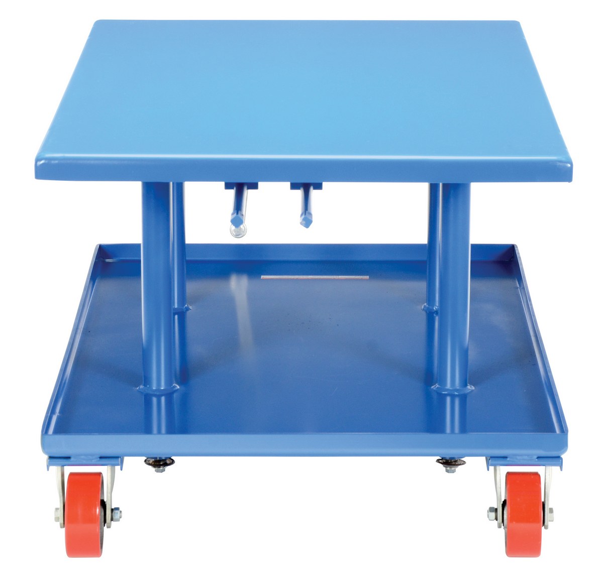 Steel Low Profile Post Table 30 In. x 48 In. 2000 Lb. Capacity BlueThe mechanical post table is an adjustable portable table that is well suited for a wide variety of material handling applications. It moves smoothly on two rigid and two swivel poly-on-steel casters. Includes bolted on adjustable floor lock. Provides positive height adjustment without a downward shift. It features a two-speed manual gear mechanism to move heavy loads.