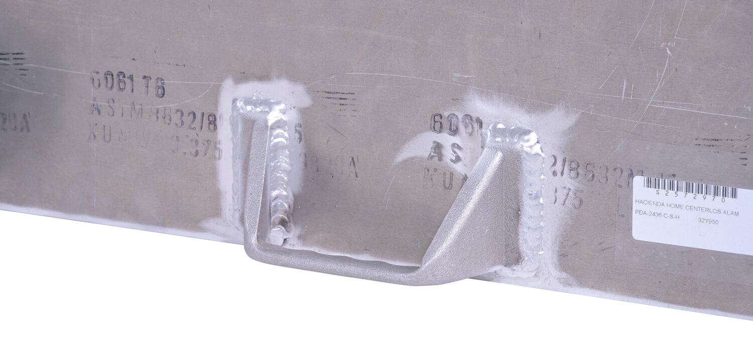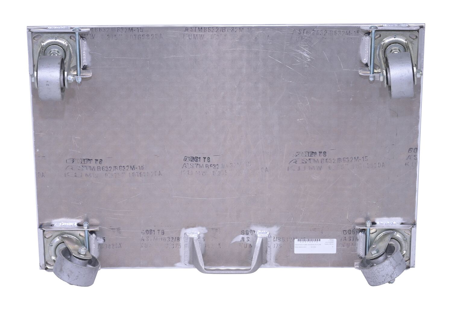 The Aluminum plate dolly is manufactured from heavy-duty raised diamond tread plate for strength and extra grip. Carrying handle is located on bottom side of one end.