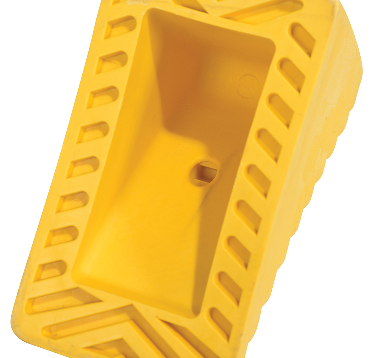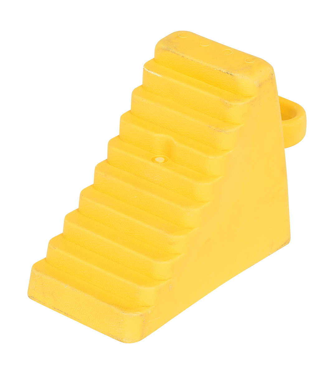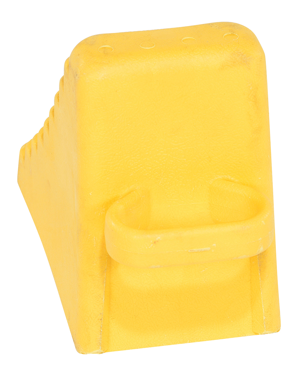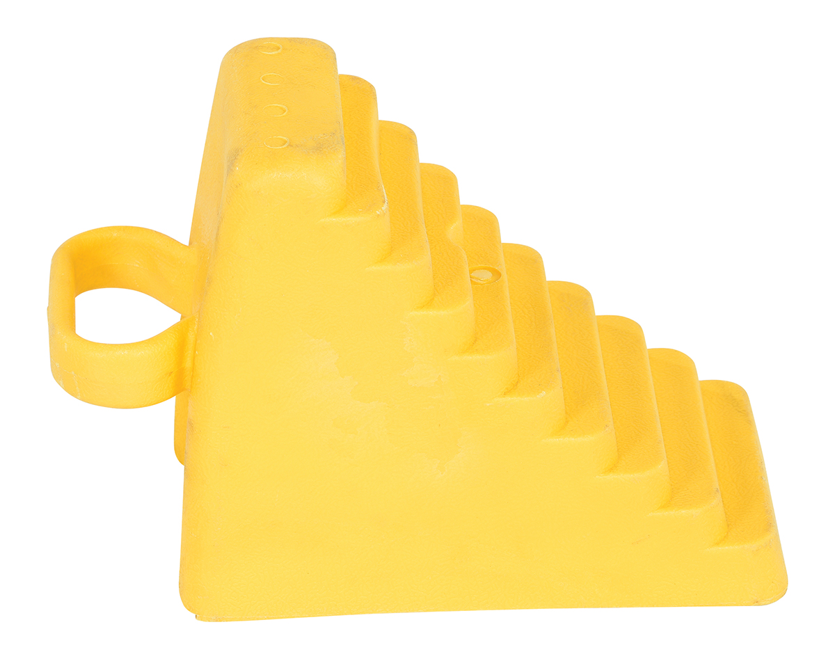 Polyethylene Wheel Chock 8-1/2 In. x 4 In. x 5-7/8 In. 7,000 Lb. Capacity YellowA polyethylene wheel chock helps maintain stability on uncertain surfaces. With a steady foundation, the chocks minimize the chance of movement or jostling. A lightweight design is perfect for carrying and transference from areas to area. With a bright design, the color promotes clear visibility. The chock is compact in size for minimal storage space when not in use.