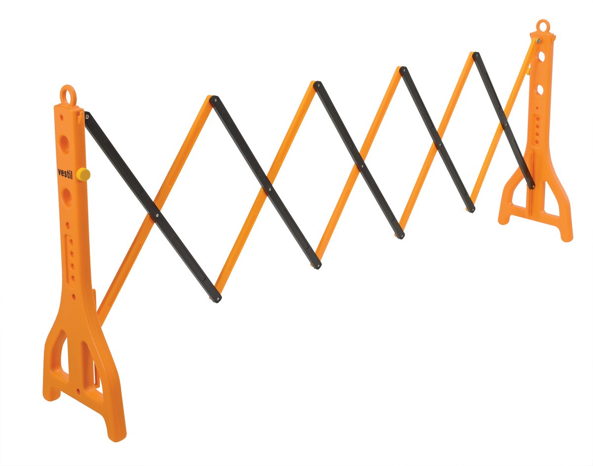 Expand-A-Gate is designed to set up quickly and easily wherever and whenever they are needed. Ideal for preventing potential accidents. Lightweight design allows personnel to quickly retrieve the gate and limit access to unsafe areas. Smooth operating scissor action. Interlocking and nestable. Constructed of heavy-duty molded yellow and black plastic. One side of gate includes reflectors for better visibility. End pieces are hollow and may be filled with liquid for added weight.
