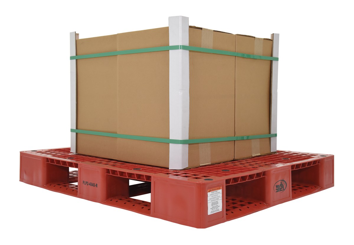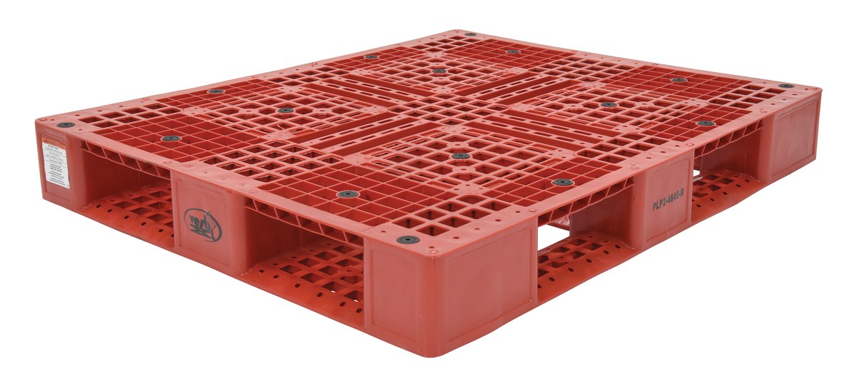 High Density Polyethylene Pallet 39-1/2 In. x 47-3/8 In. x 6 In. 8000 Lb. Capacity RedPlastic pallets are stackable for efficient storage. Made of high-density virgin polyethylene for long life. Plastic pallets are maintenance free and safer to handle than wooden pallets. Features a four-way entry and serrated deck with holes for drainage. Plastic pallets are ideal for export, pharmaceutical, medical, and food applications.