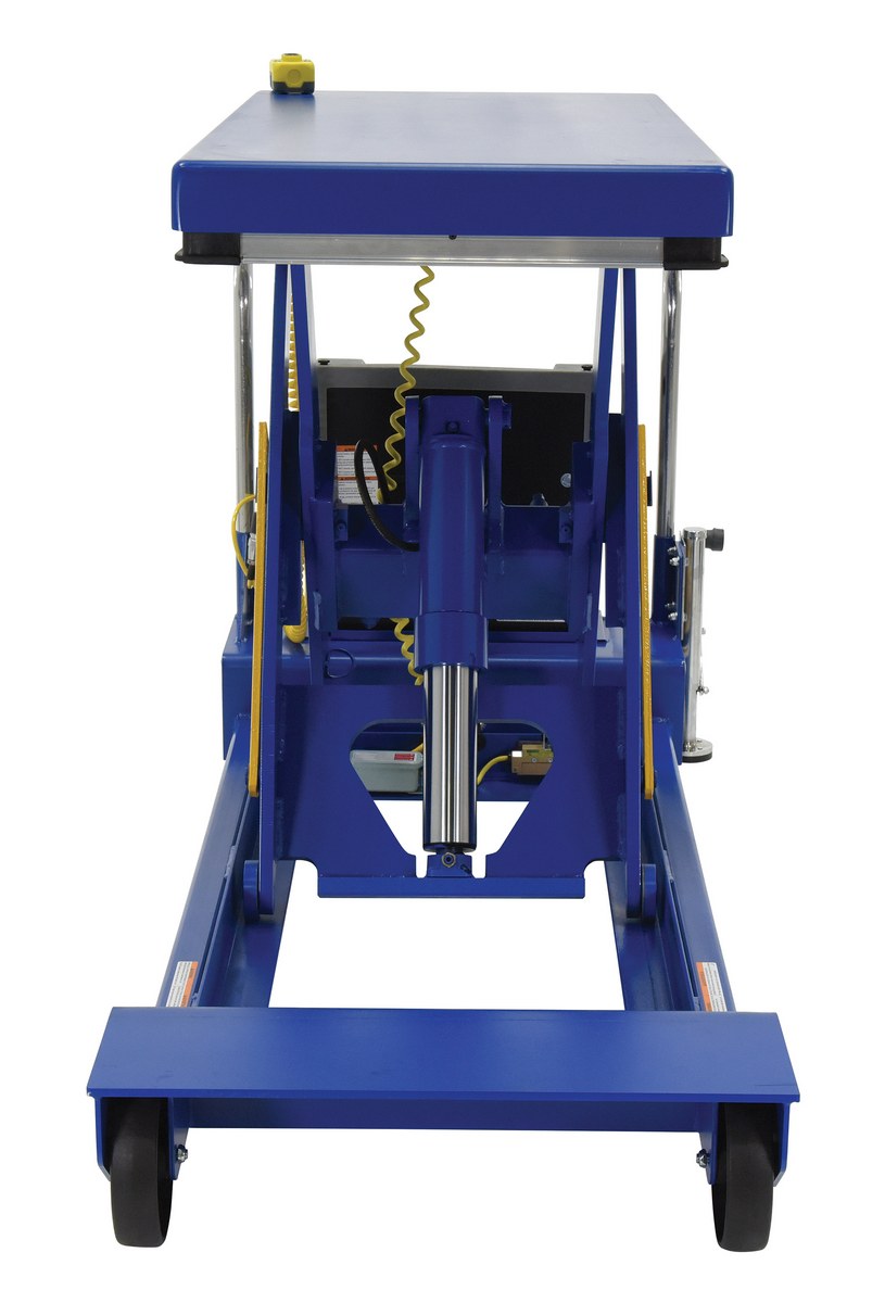 Heavy Duty portable lift scissor tables can easily transport and elevate heavy loads. Featuring glass nylon filled casters (2 swivel and 2 rigid), floor lock, patented electric pinch point guards, and magnetic hand controls. Key-operated on/off control for better security is built into the power unit. Heavy duty 12V DC powered unit with deep cycle battery, an on-board battery charger and battery charge indicator gauge comes standard.