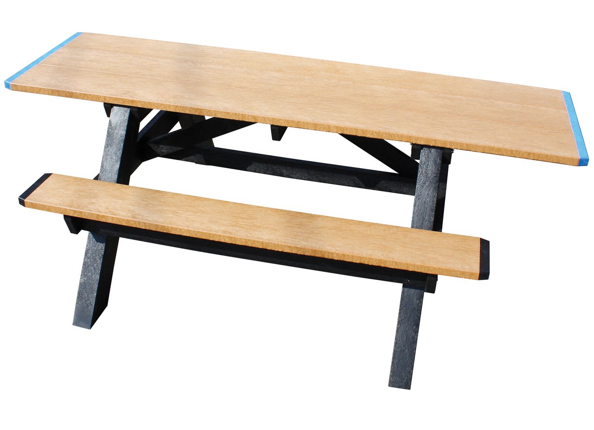 Recycled Plastic Picnic Table A-Frame ADA 28 In. x 96 In. 2000 Lb. Capacity Black Leg Cedar TopThe recycled plastic picnic tables are great for both recreational and commercial uses. The surfaces are resilient to adverse environments that arise throughout the year. The strong lightweight construction makes it easy to move from one location to another. The seat layout is easily accessible. This model is ADA compliant, made possible by the extended table top.