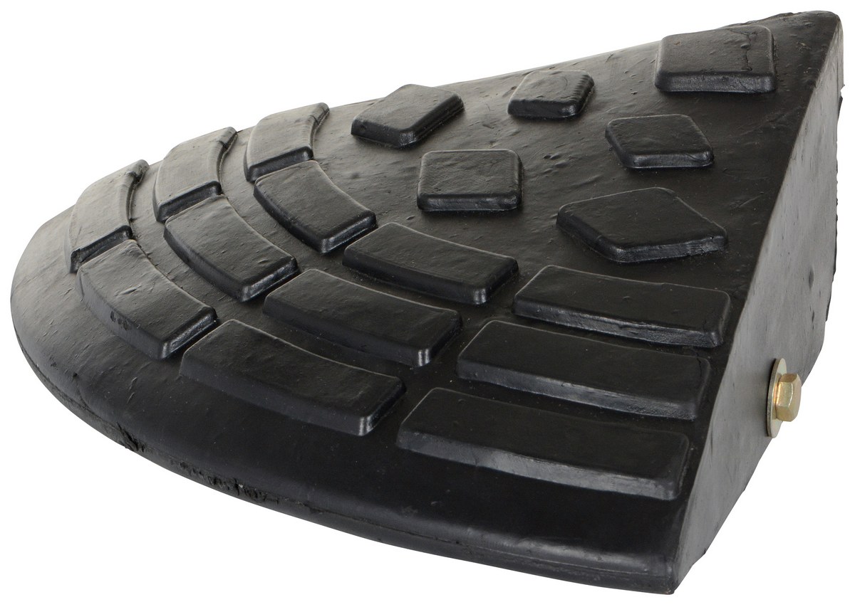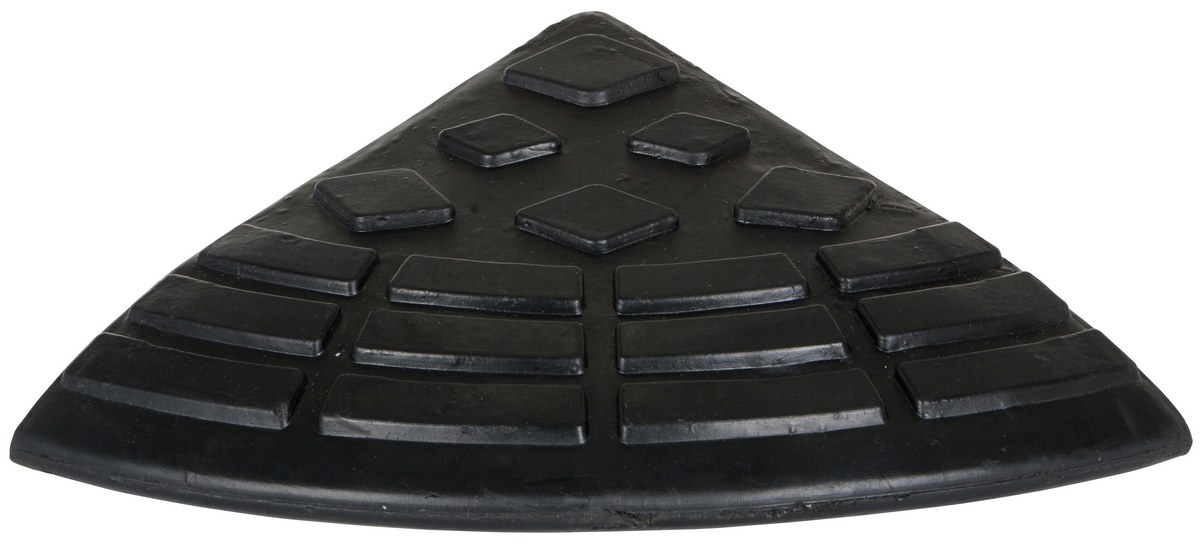 Heavy Duty Rubber Corner Ramp 9-11/16 In. x 9-11/16 In. x 3-5/8 In. 4000 Lb. Capacity BlackThe rubber ramp consists of modular rubber that is versatile for use in many applications. Add this round corner piece for a finished look. Tread surface pattern for better traction. Includes hardware for connecting ramps together. Heavy-duty molded rubber construction.
