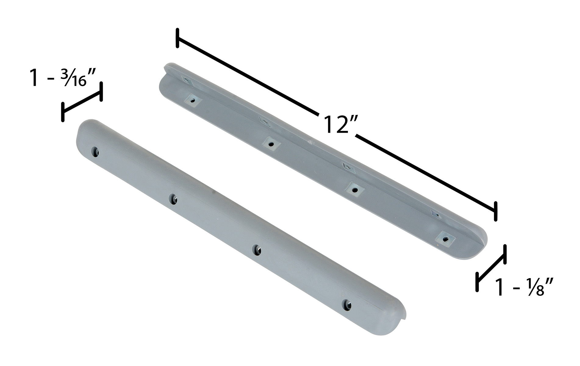 Plastic Corner & Surface Guard with Rubber Edges 12 Quantity 12 In. x 1-3/16 In. x 1-1/8 In. GrayThe corner and surface guard/bumpers will reduce damage to walls, furniture and machinery from carts and platform trucks impact. Thermoplastic rubber construction with steel insert provides impact absorption. Easily attaches to any steel, aluminum, wood, or plastic surface. Mounting hardware not included.