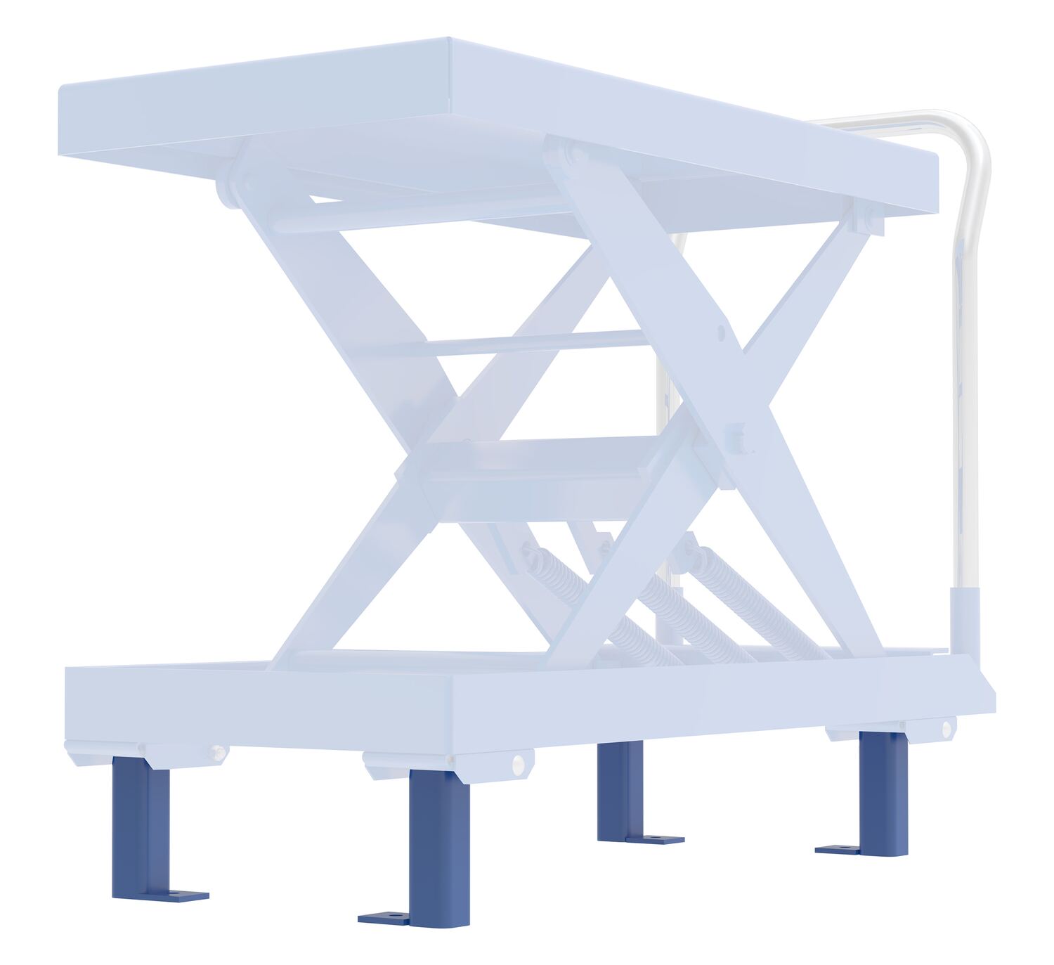 Steel Stationary Legs For Auto Hite Cart Models BlueStationary leg sets are a great accessory to a lift carts. By assigning the cart in a specific area the legs set create a solid base to a workplace. The set continues to have all the strength and durability of its portable counterpart, except the ability to roll.