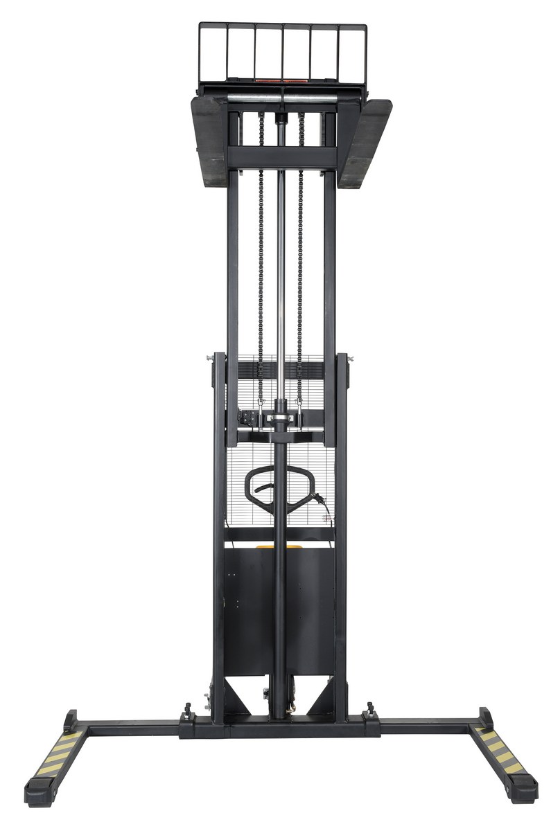 Steel/Plastic Hand Pump DC Powered Stacker with Adjustable Forks and Legs 98 In. Raised Height 2,000 Lb. Capacity Black / YellowAn economical alternative DC powered lift stacker. Ideal for maintenance and commercial applications. This unit can be used as manual hand pump lift or electric powered lift. Ideal when power is not available. High quality hydraulic pump and DC lift system. Compact design and strong steel construction. An economical lift to handle tasks such as transporting dies, molds, and skids. Powered with two (2) 12V AGM batteries. Integral battery charger, battery level gauge, and adjustable lowering speed. All models are easily maneuverable using the standard pull handle. Forks measures 26." wide by 42" long. Individual forks are 6" wide.