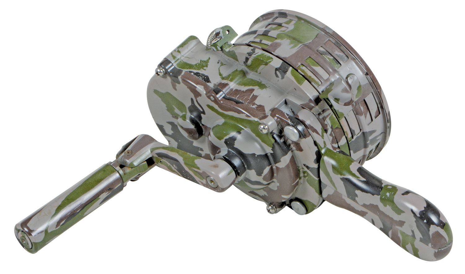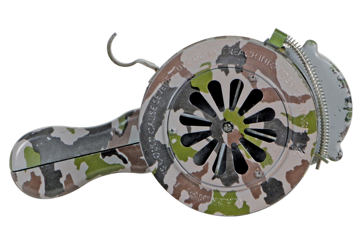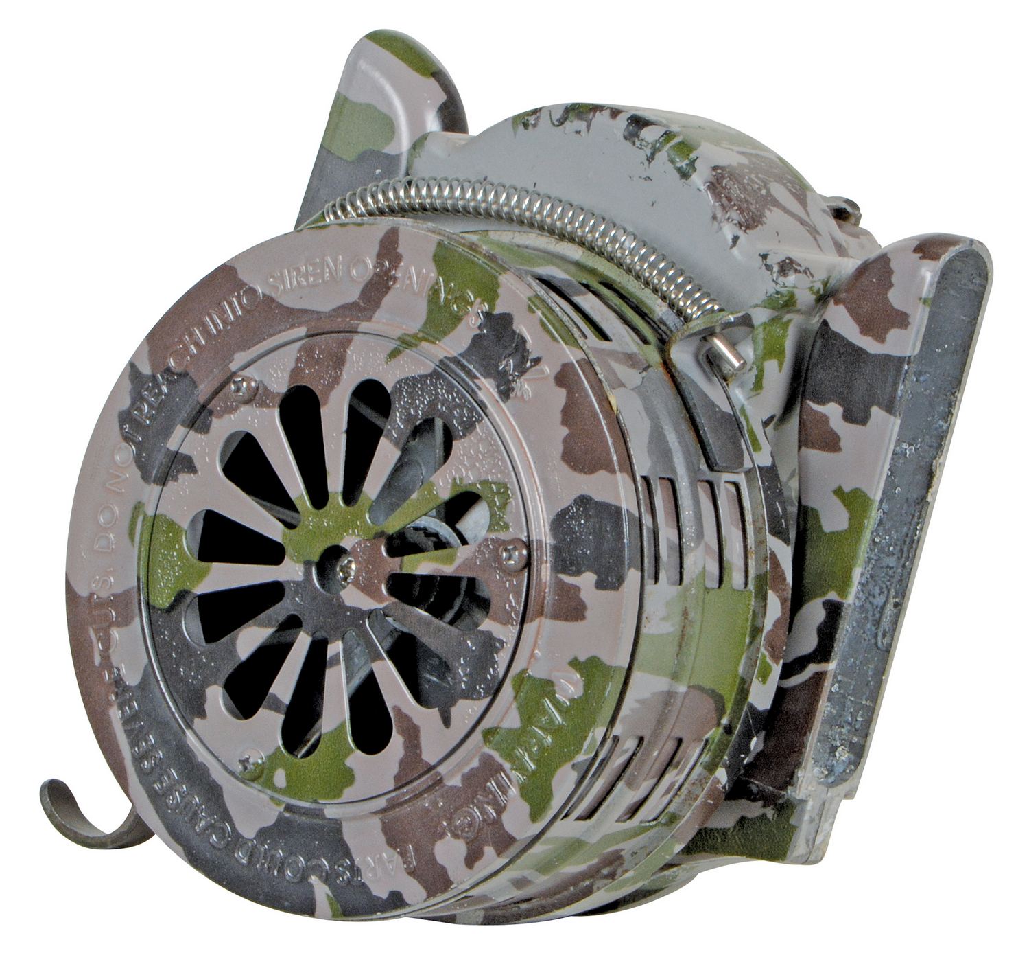 Steel Warning Siren Hand Crank CamouflageThis warning siren is an ideal method to warn people of dangerous situations including: severe weather warnings, emergency circumstances, terror situations, military alerts and correctional facility alerts. Easy hand crank operation. Includes a convenient carrying bag.