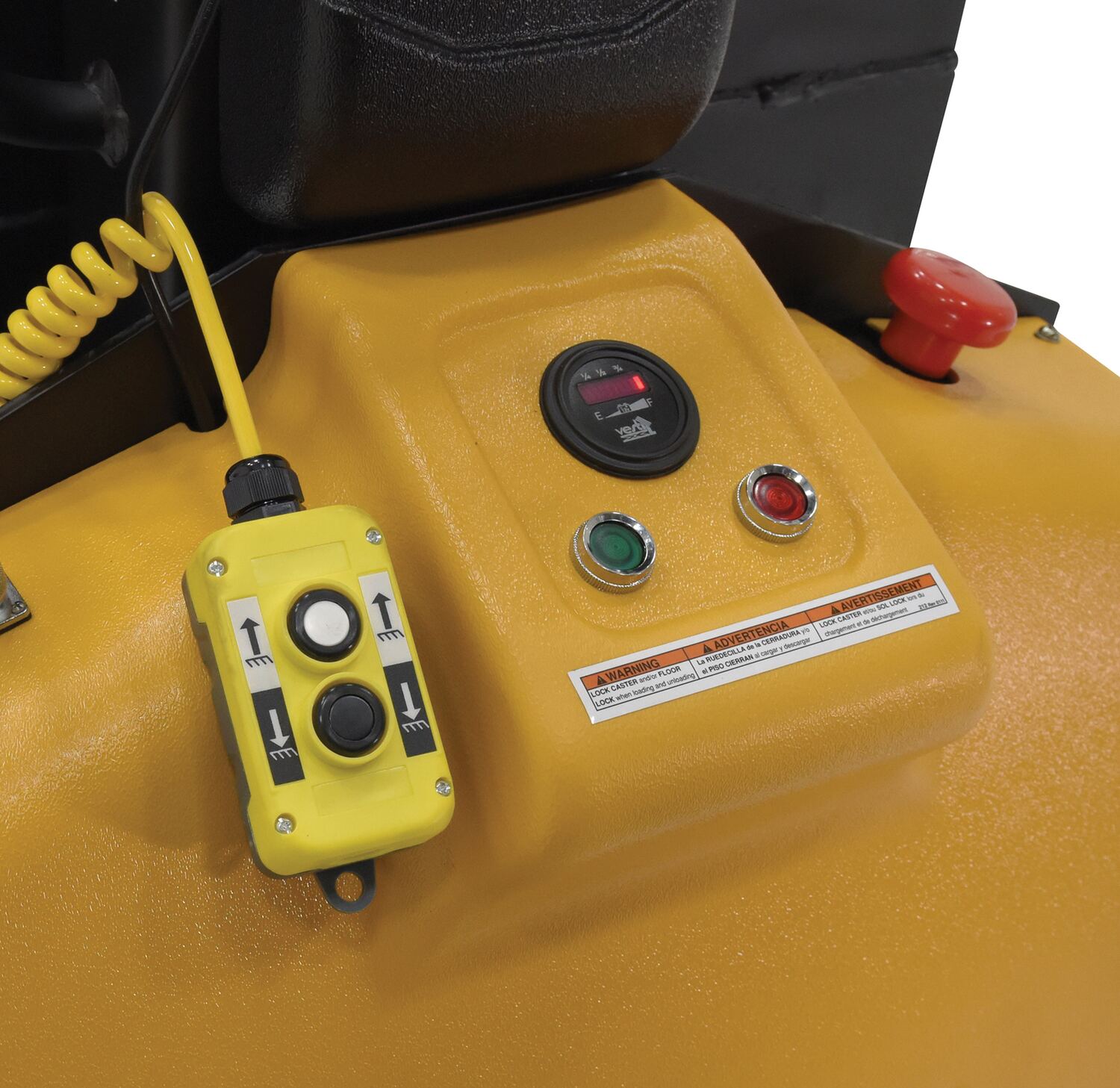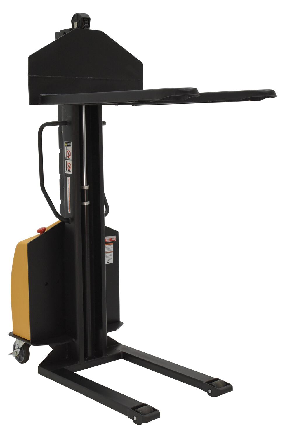 Steel Narrow Mast Stacker DC Powered 63 In. Raised Height Fixed Forks 45-1/4 In. Fork Length 1,000 Lb. Capacity YellowThe narrow mast stacker is great for the shipping and manufacturing facilities. The stacker provides a fast efficient solution to loading and unloading products in closely confined areas. The unit features a simple push button design for lifting control, nylon steering and load wheels for excellent maneuverability, and a battery charger and gauge. Models are available with fixed or adjustable forks as well as fixed or adjustable leg supports.
