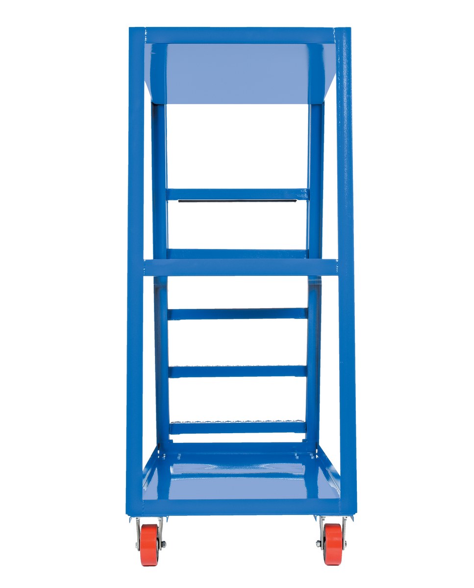 Steel High Frame Cart with Polyurethane On Steel Casters 56-1/8 In. x 21-7/8 In. x 74-1/16 In. 1,000 Lb. Capacity BlueThis oversized hi-frame stock picker truck is perfect for large jobs. Ideal for oversized cartons, boxes, parts, and supplies. A spring loaded steel ladder for sure, safe climbing, and loading. Steps have non-skid footing with self-cleaning surface. This stock picker truck has three (3) shelves. Built of durable steel construction. This unit is powder coated a blue finish.
