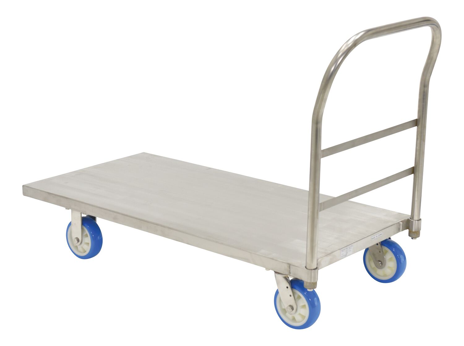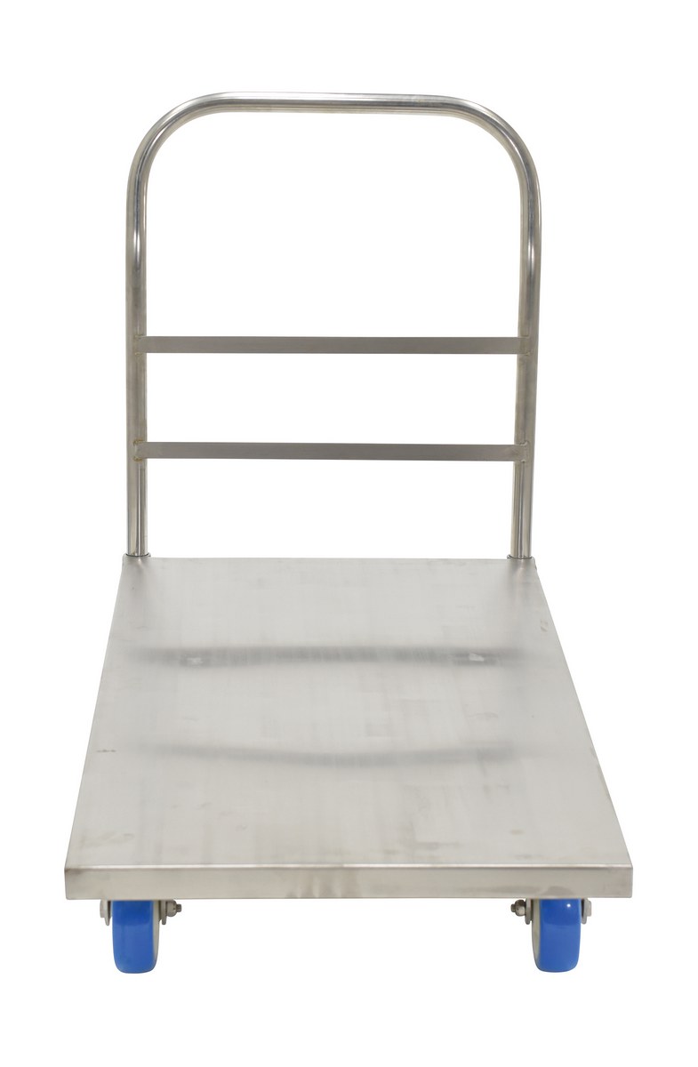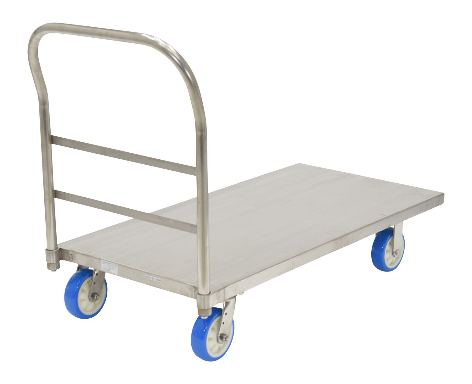 201 Stainless Steel Platform Truck 24 x 48 In. Deck 2,000 Lb. Static Capacity SilverHigh quality Stainless Steel platform trucks are highly suited for clean room environments, applications with food handling, and pharmaceutical industries. Completely formed from 201 grade stainless steel sheet and tube. Corrosion resistant, non-wearing, temperature resistant, completely hygienic stainless steel roller bearings. 100% Stainless steel platform trucks.