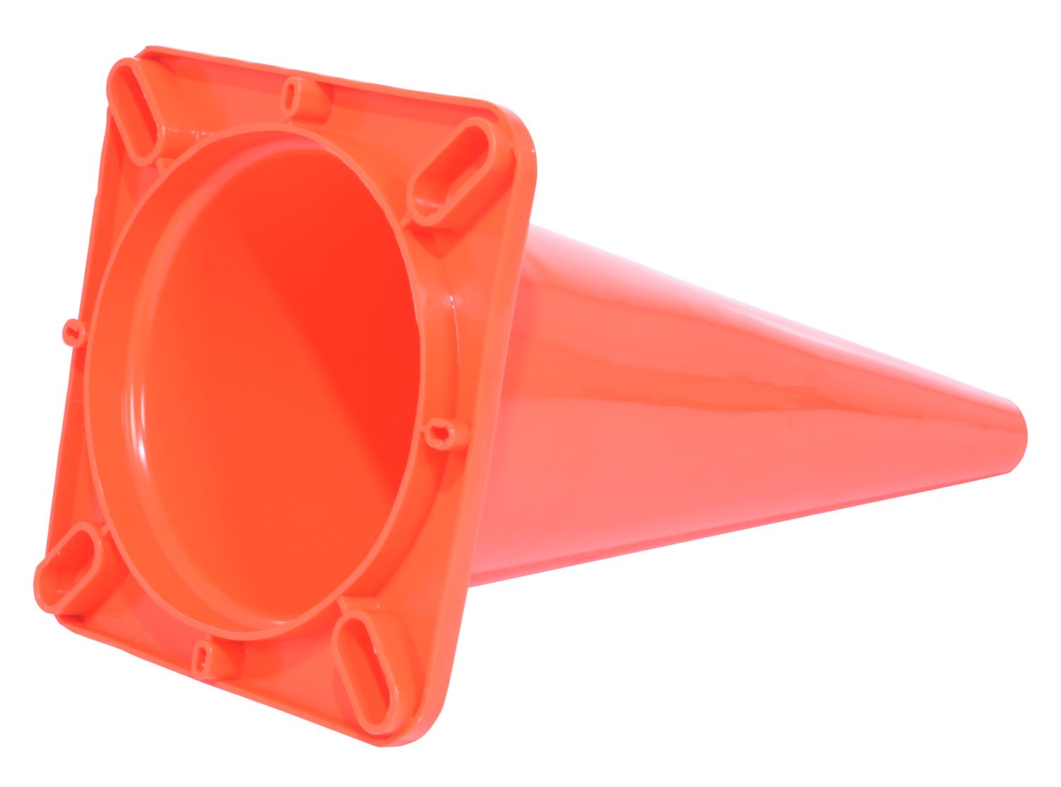This durable all weather cone is constructed from one-hundred (100) percent PVC for long life. The construction prohibits fading and cracking. Will retain its shape for years of reliable service.