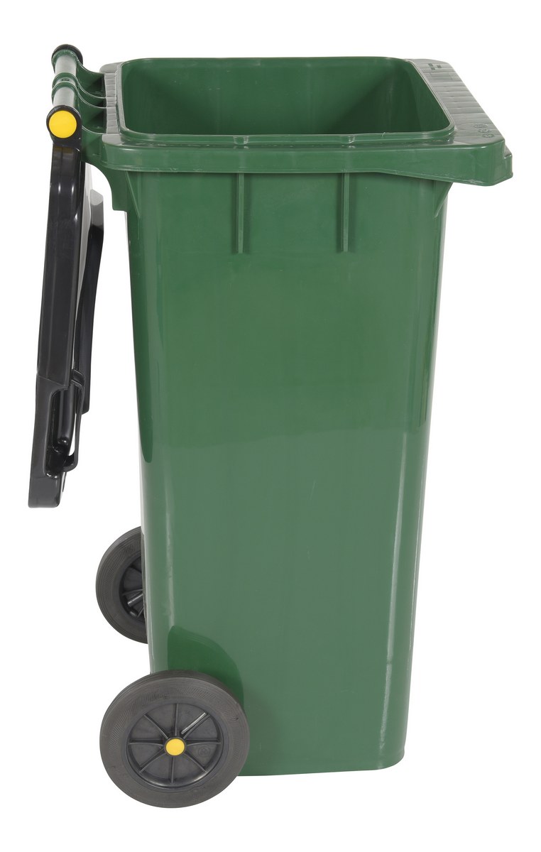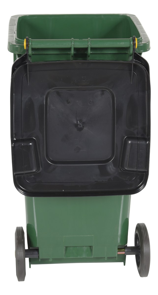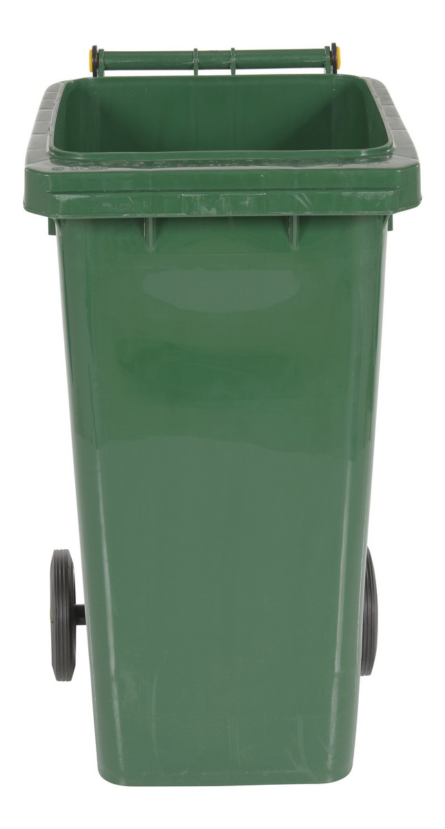 High Density Polyethylene 32 Gallon Trash Can GreenThe trash can is constructed of durable polyethylene that withstands subzero cold and extreme summer heat. Great for high traffic areas such as: warehouses, fairs, ball parks, schools, etc. Each container includes two (2) wheels for easy portability and hinged lips to keep the rain out. Keep your waste out of eyesight in our heavy-duty and easy to move refuse containers.