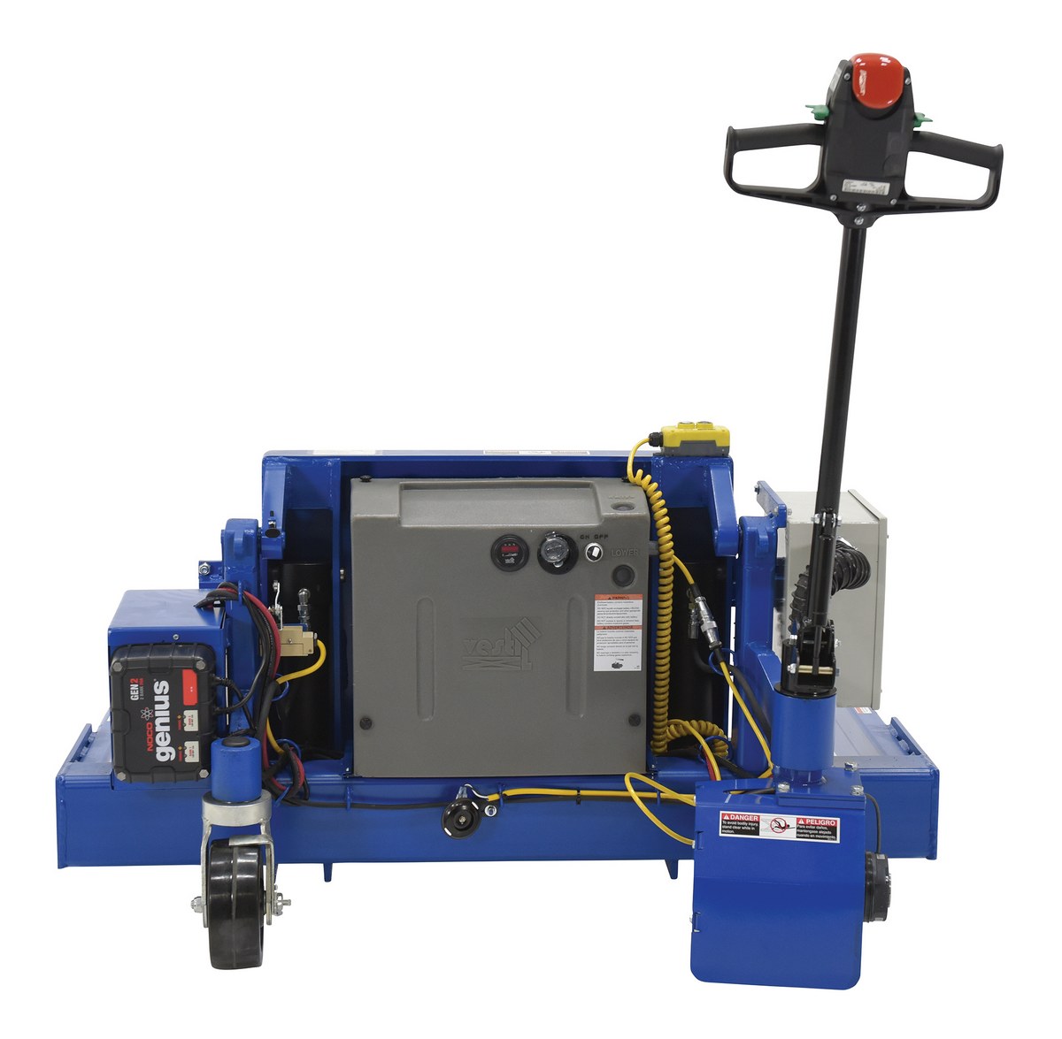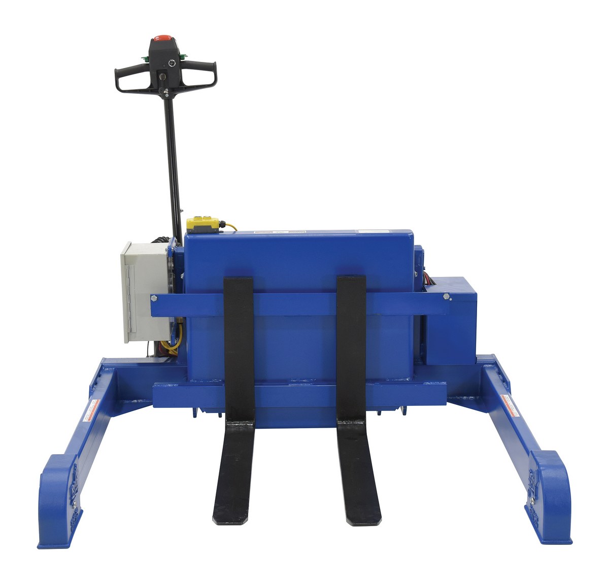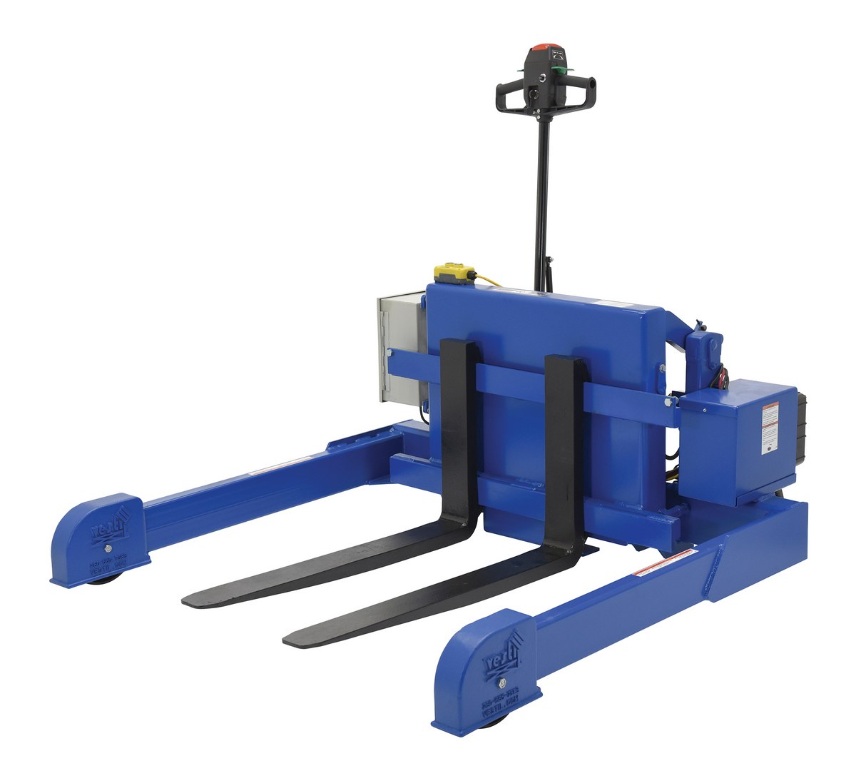 Steel Tilt Master Straddle DC Powered Traction Drive System 4,000 Lb. Capacity BlueLift and position filled tote boxes and baskets without the need of a fork truck or lift table using the new designed heavy duty tilt master. These tilters function as transporters by moving completed products from work station to work station without waiting for a fork truck. The unit has a thin profile to allow the user to get as close to the load as possible. The power traction drive system allows the unit to be controlled and maneuvered quickly and easily.
