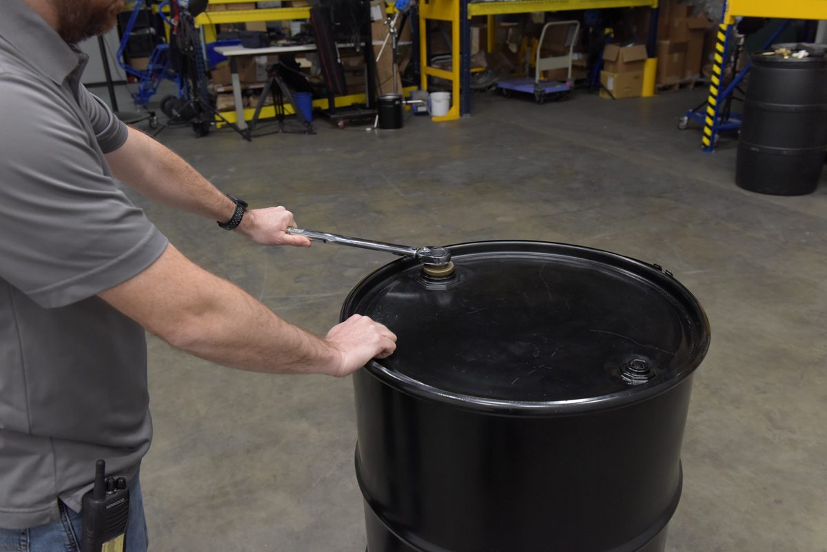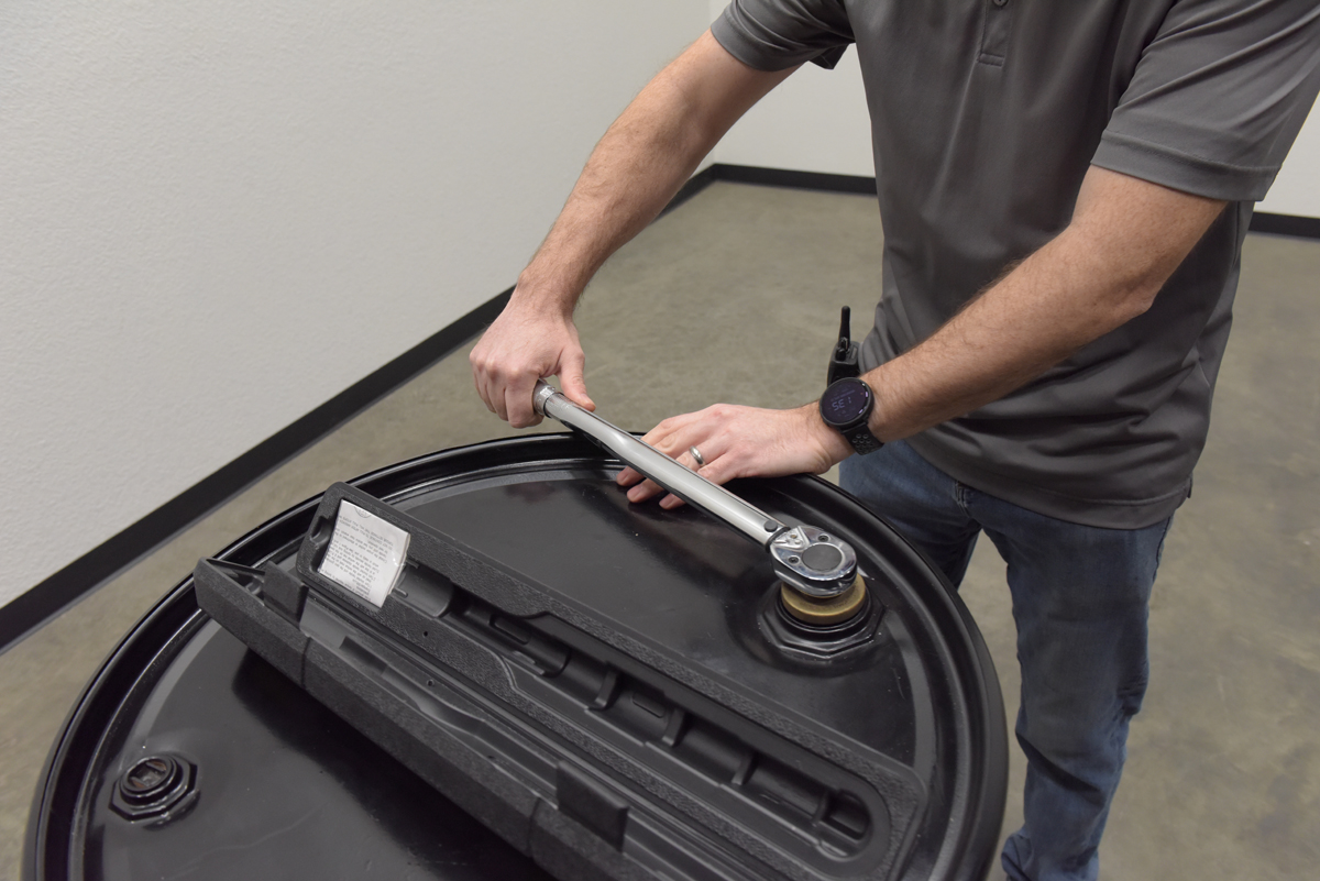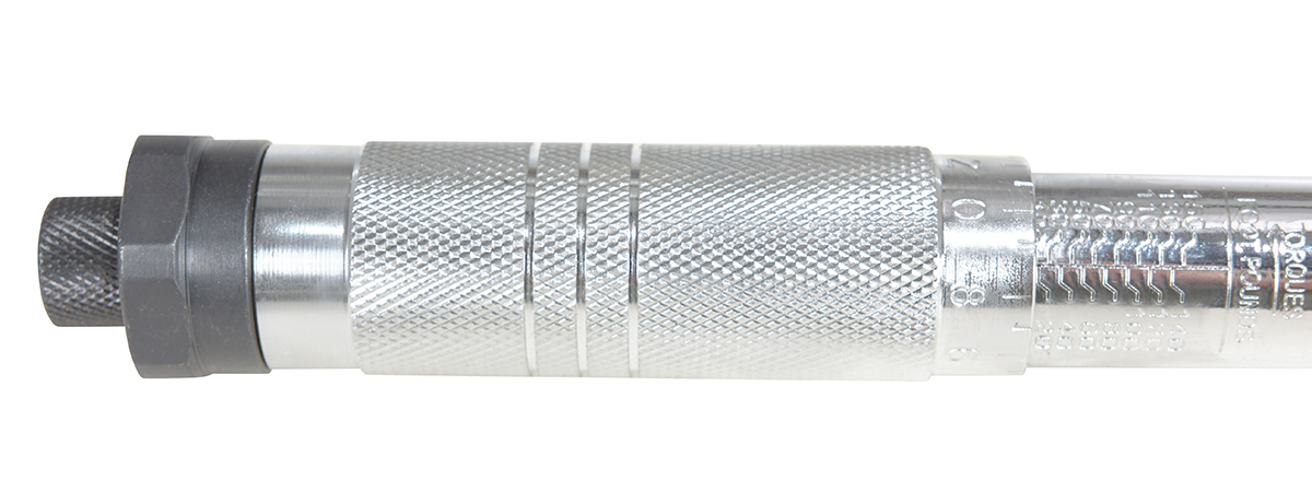 Reversible ratchet-head style torque wrench with easy to set torque setting - wrench "clicks" when setting is reached. Knurled handle grip surface for extra grip during use. Use with bung sockets to comply with UNC standards.