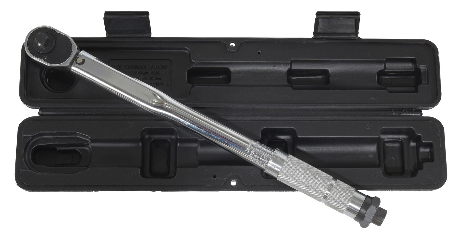 Reversible ratchet-head style torque wrench with easy to set torque setting - wrench "clicks" when setting is reached. Knurled handle grip surface for extra grip during use. Use with bung sockets to comply with UNC standards.