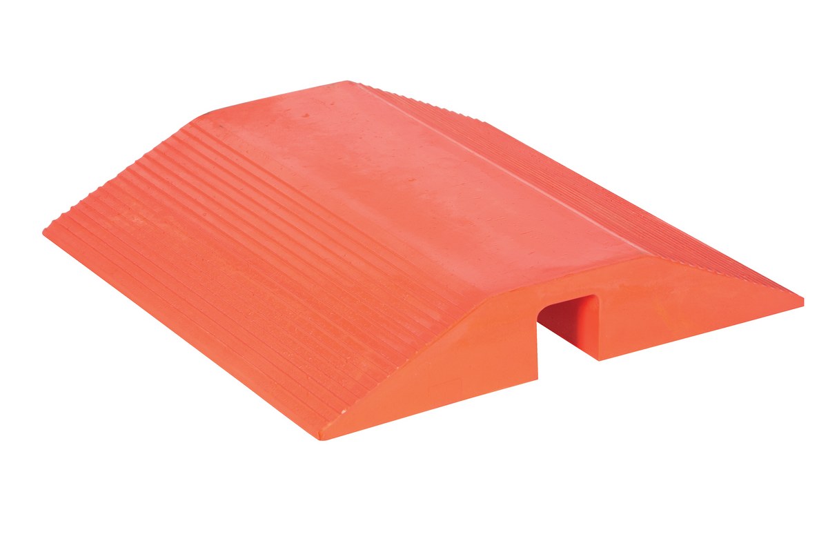 Urethane Cable Crossover 24 x 24 OrangeThe urethane hose and cable crossover is great for hospitality facilities and other establishments with constant pedestrian traffic. The strong construction enables cables to be protected from daily abuse. For best use, place the cable inside the indented opening on the underside of the crossover to minimize damage. Will accommodate any highway legal vehicle up to and including fire engines.