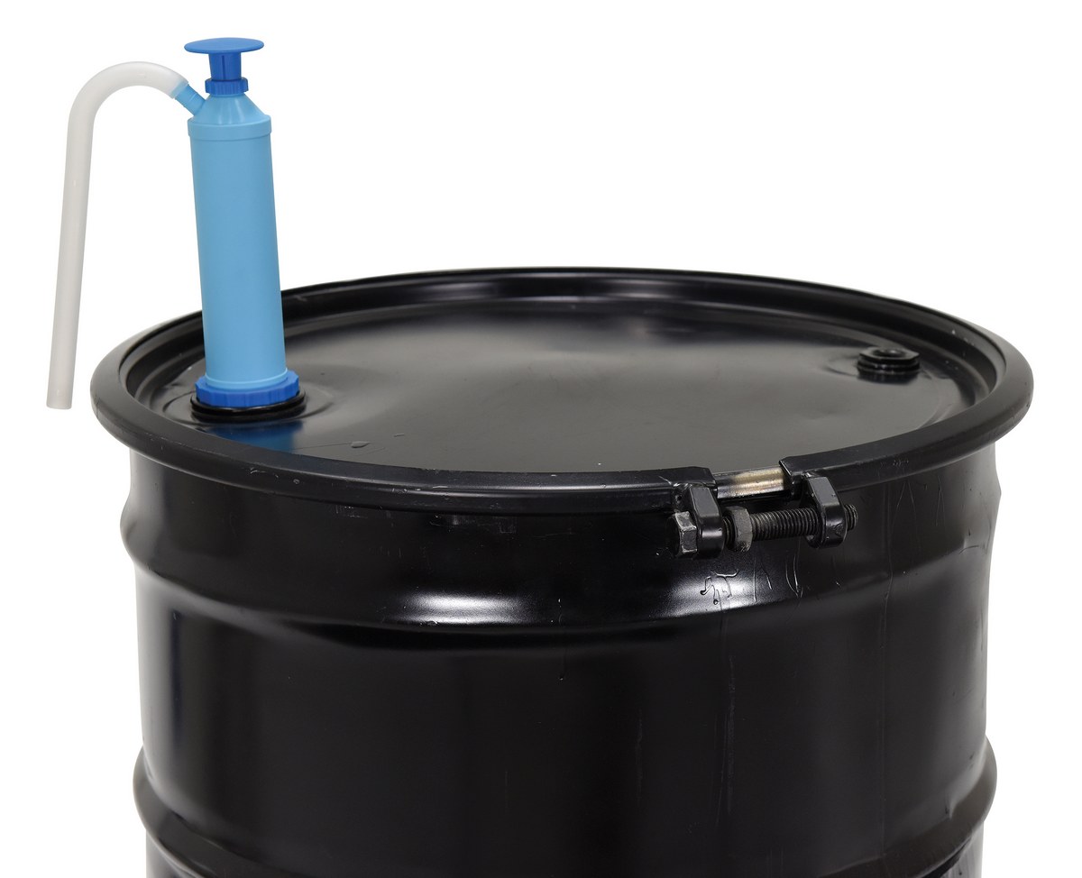 Polypropylene Drum Pump 8 Ounces Per Stroke BlueA manual drum pump is designed for dispensing and transferring liquids out of fifty-five (55) gallon drum or 5 and 15 gallon pails. Ideal for transferring water-based fluids, light oils, mild acids and corrosive soaps. This self-venting pump has exceptional resistance to corrosive chemicals (non-flammable solvents). VDP includes a two (2) piece dip tube with connector.