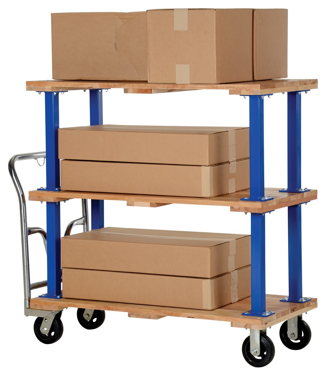 Hardwood Triple Deck Platform Cart 24 In x 48 In 1,600 Lb. Capacity TanMinimize lifting and bending with this triple decker Hardwood platform cart/portable work bench. Ideal for shipping areas, offices, and plant use, this economical cart is perfect for many of your applications. Countersunk holes allow for a smooth deck surface.