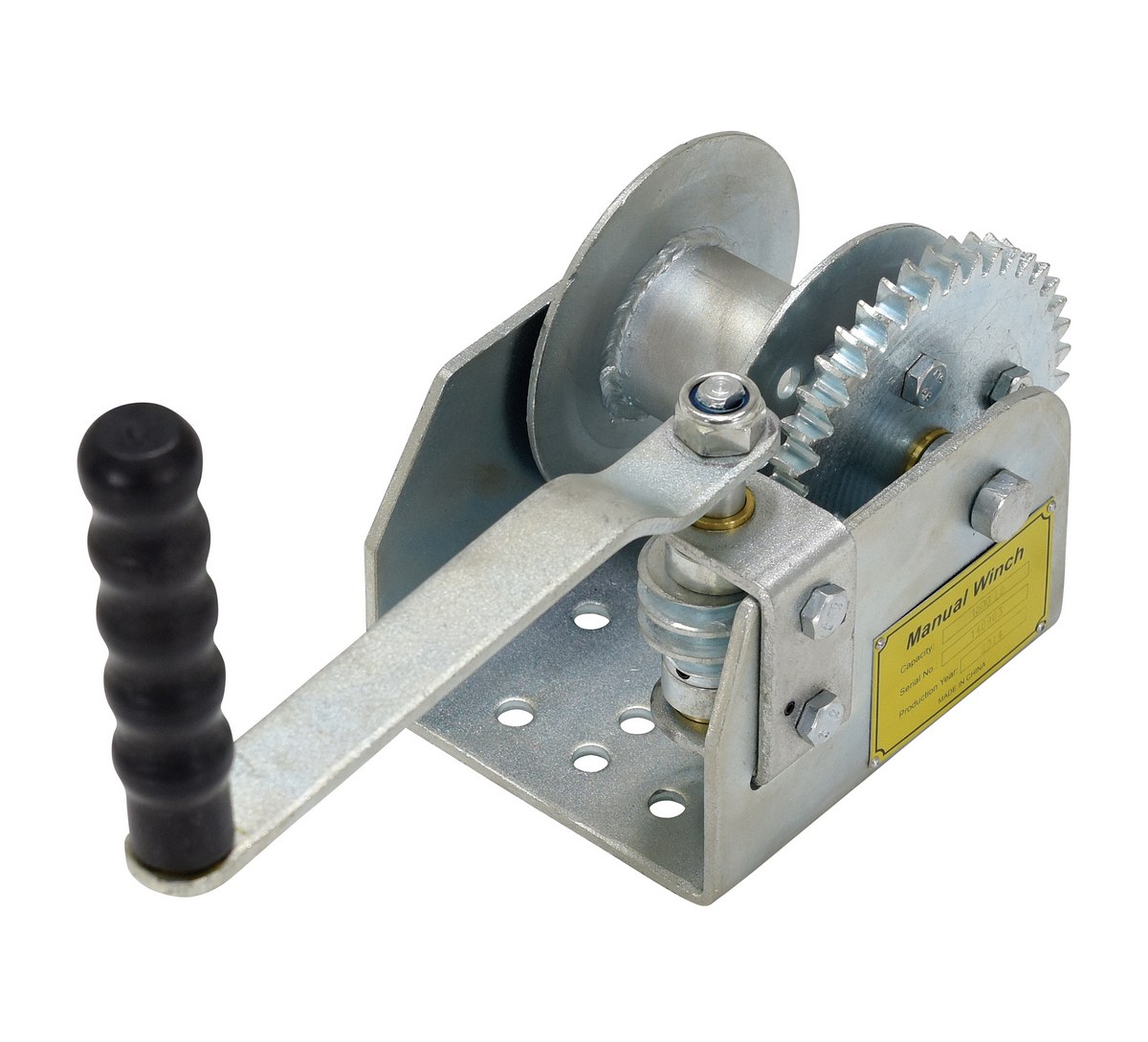 Industrial winches are pulling devices that use a wire, rope or cable to move heavy loads. This single wall mounted hand winch is constructed of steel worm gear drives with zinc plated finish. Pinion gear shaft with lubricated down bushings provide smooth operation and long life. Available in single or dual drum models.